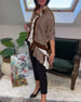 SPECIFICATIONS Top Type: Shirt Style: Casual Material: 100% Polyester Occasion: Daily Neckline: Lapel Pattern Type: Floral,Leopard Sleeve Type: Regular sleeve Sleeve Length: 3/4 Sleeve Fit Type: Loose Season: Spring,Fall Details: Buckle Package Includes: 1 x Shirt SIZE TABLE Size Bust Before After Sleeves Shoulder CM INCH CM INCH CM I...