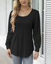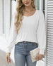 SPECIFICATIONS Top Type: Tops Style: Casual Material: Cotton Blends Occasion: Daily Neckline: Round Neck Pattern Type: Solid Color Sleeve Type: Regular sleeve Sleeve Length: Long Sleeve Fit Type: Skinny Season: Spring,Fall Details: Shirred Package Includes: 1 x Top SIZE TABLE Size Bust Waist Length CM INCH CM INCH CM INCH S 87...