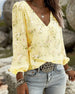 SPECIFICATIONS Top Type: Tops Style: Elegant Material: Cotton Blends Occasion: Daily Neckline: V neck_V Pattern Type: Solid Color Sleeve Type: Regular sleeve Sleeve Length: Long Sleeve Fit Type: Regular Season: Spring,Fall,Winter Details: Patchwork,Lace Package Includes: 1 x Top SIZE TABLE Size Bust Length CM INCH CM INCH S 97 3...