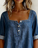 SPECIFICATIONS Top Type: Shirt Style: Casual Material: Denim Occasion: Daily Neckline: Square Neck Pattern Type: Solid Color Sleeve Type: Regular sleeve Sleeve Length: Half Sleeve Fit Type: Regular Season: Spring,Summer Details: Buttons Package Includes: 1 x Shirt SIZE TABLE Size Bust Length CM INCH CM INCH S 92 36.22 65 25.59 M 96 ...