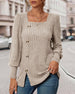 SPECIFICATIONS Top Type: Tops Style: Elegant, Business Material: 95% polyester, 5% spandex Occasion: Daily, Work Neckline: Square Neck Pattern Type: Solid Color Sleeve Type: Lantern Sleeve Sleeve Length: Long Sleeve Fit Type: Regular Season: Spring, Fall, Winter Details: Buttons, Slit Package Includes: 1 x Top SIZE TABLE Size Bust Lengt...