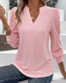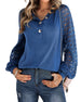 SPECIFICATIONS Top Type: Blouses Style: Casual Material: Cotton Blends, Lace Occasion: Daily Neckline: V neck_V Pattern Type: Solid Color Sleeve Type: Puff Sleeve Sleeve Length: 3/4 Sleeve Fit Type: Regular Season: Spring, Summer, Fall Details: Patchwork, Hollow Out Package Includes: 1 x Blouse SIZE TABLE Size Bust Length Sle...