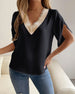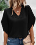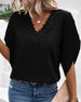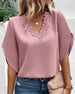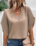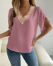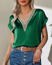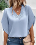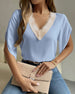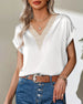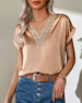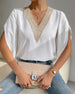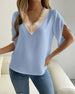 Solid color lace v-neck short-sleeved blouse