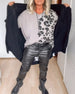 Piano print irregular long sleeve top