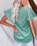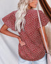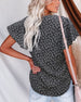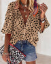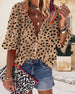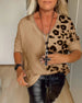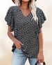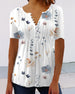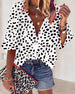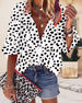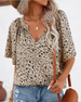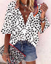 V Neck Button Print Short Sleeve Blouse