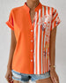 SPECIFICATIONS Top Type: Blouses Style: Casual, Business Occasion: Daily, Work Neckline: V neck_V Pattern Type: Color Block Sleeve Type: Regular sleeve Sleeve Length: Short Sleeve Fit Type: Regular Season: Spring, Summer, Fall Details: Patchwork, Buttons Material: Spandex, Polyester Package Includes: 1 x Blouse SIZE TABLE Size...