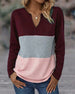 SPECIFICATIONS Top Type: Tops Style: Casual Material: 6% Spandex, 94% Polyester Occasion: Daily Neckline: V neck_V Pattern Type: Color Block Sleeve Type: Dropped shoulder Sleeve Length: Long Sleeve Fit Type: Regular Season: Spring, Fall Package Includes: 1 x Top SIZE TABLE Size Bust Length CM INCH CM INCH S 95 37.40 68 26.7...