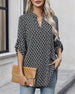 SPECIFICATIONS Top Type: Blouses Style: Elegant, Business Material: Cotton Blends Occasion: Daily, Work Neckline: V neck_V Pattern Type: Print Sleeve Type: Regular sleeve Sleeve Length: Nine Points Sleeve Fit Type: Regular Season: Spring, Fall Details: Buttons Package Includes: 1 x Blouse SIZE TABLE Size Bust Length CM INCH CM INCH ...