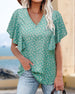 V-neck and flower print short-sleeved blouse