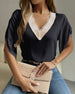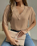 Solid color v-neck short-sleeved blouse