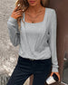 SPECIFICATIONS Top Type: Tops Style: Casual Material: Cotton Blends Occasion: Daily Neckline: Square Neck Pattern Type: Solid Color Sleeve Type: Regular sleeve Sleeve Length: Long Sleeve Fit Type: Regular Season: Spring, Fall, Winter Details: Patchwork Package Includes: 1 x Top SIZE TABLE Size Bust Length CM INCH CM INCH S...