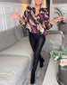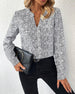 V-neck printed elegant long-sleeved blouse