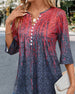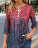 SPECIFICATIONS Top Type: Blouses Style: Casual Material: Cotton Blends Occasion: Daily Neckline: Round Neck Pattern Type: Gradient Sleeve Type: Regular sleeve Sleeve Length: 3/4 Sleeve Fit Type: Regular Season: Spring, Summer, Fall Details: Buttons Package Includes: 1 x Blouse SIZE TABLE Size Bust Length CM INCH CM INCH S 9...