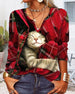 Cat patchwork long-sleeved top