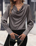 SPECIFICATIONS Top Type: Blouses Style: Elegant Material: Cotton Blends Occasion: Daily, Vacation Neckline: Cowl Neck Pattern Type: Solid Color Sleeve Type: Regular sleeve Sleeve Length: Long Sleeve Fit Type: Regular Season: Spring, Fall, Winter Details: Shirred Package Includes: 1 x Blouse SIZE TABLE Size Bust Length CM INCH CM INCH ...