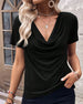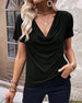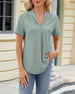 SPECIFICATIONS Top Type: Tops Style: Casual Material: Cotton Blends Occasion: Daily Neckline: V neck_V Pattern Type: Solid Color Sleeve Type: Regular sleeve Sleeve Length: Short Sleeve Fit Type: Regular Season: Spring, Summer, Fall Details: Shirred Package Includes: 1 x Top SIZE TABLE Size Bust Length CM INCH CM INCH S 95 3...