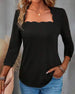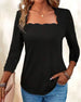 SPECIFICATIONS Top Type: Tops Style: Casual, Elegant Material: Cotton Blends Occasion: Daily, Vacation, Work Neckline: Square Neck Pattern Type: Solid Color Sleeve Type: Regular sleeve Sleeve Length: Nine Points Sleeve Fit Type: Regular Season: Spring, Fall Package Includes: 1 x Top SIZE TABLE Size Bust Length CM INCH CM INC...