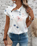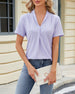 SPECIFICATIONS Top Type: Tops Style: Elegant, Business Material: Cotton Blends Occasion: Daily, Work Neckline: Lapel Pattern Type: Solid Color Sleeve Type: Regular sleeve Sleeve Length: Short Sleeve Fit Type: Regular Season: Spring, Summer, Fall Details: Hollow Out, Shirred Package Includes: 1 x Top SIZE TABLE Size Bust Leng...