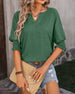 SPECIFICATIONS Top Type: Tops Style: Casual Material: Cotton Blends Occasion: Daily Neckline: V neck_V Pattern Type: Solid Color Sleeve Type: Flare Sleeve Sleeve Length: 3/4 Sleeve Fit Type: Regular Season: Spring, Summer Package Includes: 1 x Top SIZE TABLE Size Bust Length CM INCH CM INCH S 95 37.40 68 26.77 M 100 39.37 6...