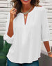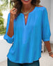 SPECIFICATIONS Top Type: Shirt Style: Casual, Elegant Material: Cotton Blends Occasion: Daily, Vacation Neckline: V neck_V Pattern Type: Print Sleeve Type: Dropped shoulder Sleeve Length: 3/4 Sleeve Fit Type: Regular Season: Spring, Summer Package Includes: 1 x Shirt SIZE TABLE Size Bust Length CM INCH CM INCH S 95 37.40 68 26.77 ...