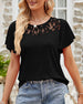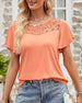Mesh lace stitching solid color short-sleeved top