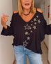 SPECIFICATIONS Top Type: Tops Style: Casual Material: Cotton Blends Occasion: Daily Neckline: V neck_V Pattern Type: Star Sleeve Type: Cold Shoulder Sleeve Length: Long Sleeve Fit Type: Regular Season: Summer Details: Cut Out Package Includes: 1 x Top SIZE TABLE Size Bust Length CM INCH CM INCH S 95 37.40 ...
