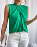 Cross Neck Solid Color Pleated Top