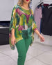 Leaf print ruffle sleeve blouse