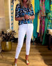 Colorful floral print casual blouse