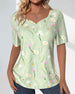 SPECIFICATIONS Top Type: Tops Style: Casual Material: 100% Polyester Occasion: Daily, Vacation Neckline: Round Neck Pattern Type: Print Sleeve Type: Ruffle Sleeve Sleeve Length: Short Sleeve Fit Type: Regular Season: Spring, Summer Details: Buttons Package Includes: 1 x Top SIZE TABLE Size Bust Length Sleeves Shoulder CM INCH CM IN...