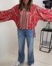 Printed crew neck bat sleeve blouse