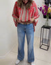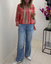 Button striped polka dot long sleeve top