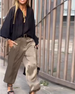 V-neck pleated solid color blouse