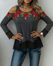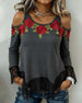 SPECIFICATIONS Top Type: Tops Style: Sweet Material: Cotton Blends Occasion: Daily Neckline: Cold Shoulder Pattern Type: Print Sleeve Type: Regular sleeve Sleeve Length: Long Sleeve Fit Type: Regular Season: Fall,Winter Package Includes: 1 x Top SIZE TABLE Size Bust Length CM INCH CM INCH S 97 38.19 65 25.59 M 101 39.76 66.5 2...