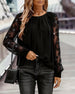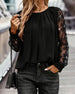 Elegant Lace Patchwork Balloon Sleeve Blouse