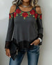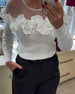 Three-Dimensional Floral Lace Long-Sleeved Top