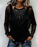 Fine Glitter Long-Sleeve Pleated Crew Neck Top