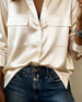 SPECIFICATIONS Top Type: Shirt Style: Chic Material: Cotton Blends Occasion: Daily Neckline: Lapel Pattern Type: Solid Color Sleeve Type: Regular sleeve Sleeve Length: Long Sleeve Fit Type: Regular Season: Fall,Winter Details: Pocket,Buttons Package Includes: 1 x Shirt SIZE TABLE Size Bust Length CM INCH CM INCH S 97 38.19 65 25...