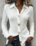 SPECIFICATIONS Top Type: Tops Style: Casual Material: Cotton Blends Occasion: Daily Neckline: Slant Collar Pattern Type: Solid Color Sleeve Type: Regular sleeve Sleeve Length: Long Sleeve Fit Type: Regular Season: Fall,Winter Details: Buttons Package Includes: 1 x Top SIZE TABLE Size Bust Length CM INCH CM INCH S 92 36.22 65 25.59 M...