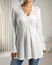 SPECIFICATIONS Top Type: Tops Style: Casual Material: Cotton Blends,Lace Occasion: Daily Neckline: V neck_V Pattern Type: Solid Color Sleeve Type: Regular sleeve Sleeve Length: Long Sleeve Fit Type: Regular Season: Fall,Winter Details: Lace Package Includes: 1 x Top SIZE TABLE Size Bust Length CM INCH CM INCH S 97 38.19 68 26.77 ...