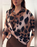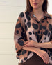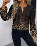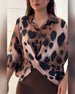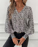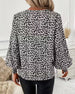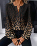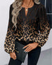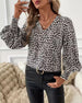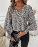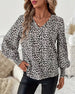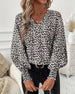 Lantern Sleeve Leopard Print V-Neck Blouse