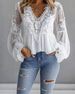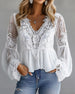 Lantern Sleeve Lace Patchwork Versatile Blouse