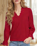 SPECIFICATIONS Top Type: Blouses Style: Casual Material: Cotton Blends,Lace Occasion: Daily Neckline: V neck_V Pattern Type: Solid Color Sleeve Type: Ruffle Sleeve Sleeve Length: Long Sleeve Fit Type: Regular Season: Fall,Winter Details: Ruffle,Lace Package Includes: 1 x Blouse SIZE TABLE Size Bust Length CM INCH CM INCH S 92 36.22 68 2...