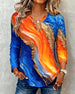 Color-Blocked V-Neck Patterned Long-Sleeved Top