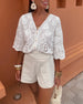 SPECIFICATIONS Top Type: Shirt Style: Casual Material: Cotton Blends,Lace Occasion: Daily Neckline: V neck_V Pattern Type: Solid Color Sleeve Type: Ruffle Sleeve Sleeve Length: Half Sleeve Fit Type: Regular Season: Fall,Winter Details: Embroidered Package Includes: 1 x Shirt SIZE TABLE Size Bust Length CM INCH CM INCH S 97 38.19...