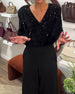Subtle-Sparkle V-Neck Long Sleeve Top