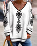 SPECIFICATIONS Top Type: Tops Style: Casual Material: Cotton Blends Occasion: Daily Neckline: V neck_V Pattern Type: Print Sleeve Type: Regular sleeve Sleeve Length: Long Sleeve Fit Type: Regular Season: Fall,Winter Package Includes: 1 x Top SIZE TABLE Size Bust Length CM INCH CM INCH S 97 38.19 68 26.77 M 101 39.76 69.5 27.36 ...