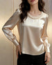 SPECIFICATIONS Top Type: Shirt Style: Casual Material: Satin Occasion: Daily Neckline: Round Neck Pattern Type: Solid Color Sleeve Type: Regular sleeve Sleeve Length: Long Sleeve Fit Type: Regular Season: Fall,Winter Package Includes: 1 x Shirt SIZE TABLE Size Bust Length CM INCH CM INCH S 92 36.22 68 26.77 M 96 37.8 69.5 27.36 L 10...