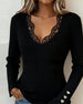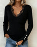 SPECIFICATIONS Top Type: Tops Style: Chic Material: Cotton Blends,Lace Occasion: Daily Neckline: V neck_V Pattern Type: Solid Color Sleeve Type: Regular sleeve Sleeve Length: Long Sleeve Fit Type: Regular Season: Fall,Winter Details: Lace Package Includes: 1 x Top SIZE TABLE Size Bust Length CM INCH CM INCH S 97 38.19 65 25.59 ...