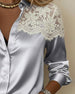 Lace Panels Versatile Lapel Shirt